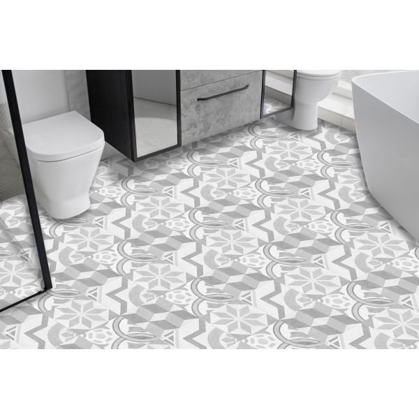 Baldosas de suelo grises con patrón geométrico - 24 uds