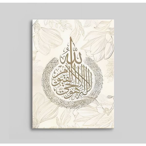 Este exquisito lienzo presenta caligrafía islámica elegante sobre un fondo floral delicado. Es una adición ideal a cualquier espacio vital, que ofrece tanto belleza como profundidad cultural. Esta obra de arte integra maravillosamente diseños ornamentales y un profundo significado espiritual. El producto contiene solo un lienzo.
