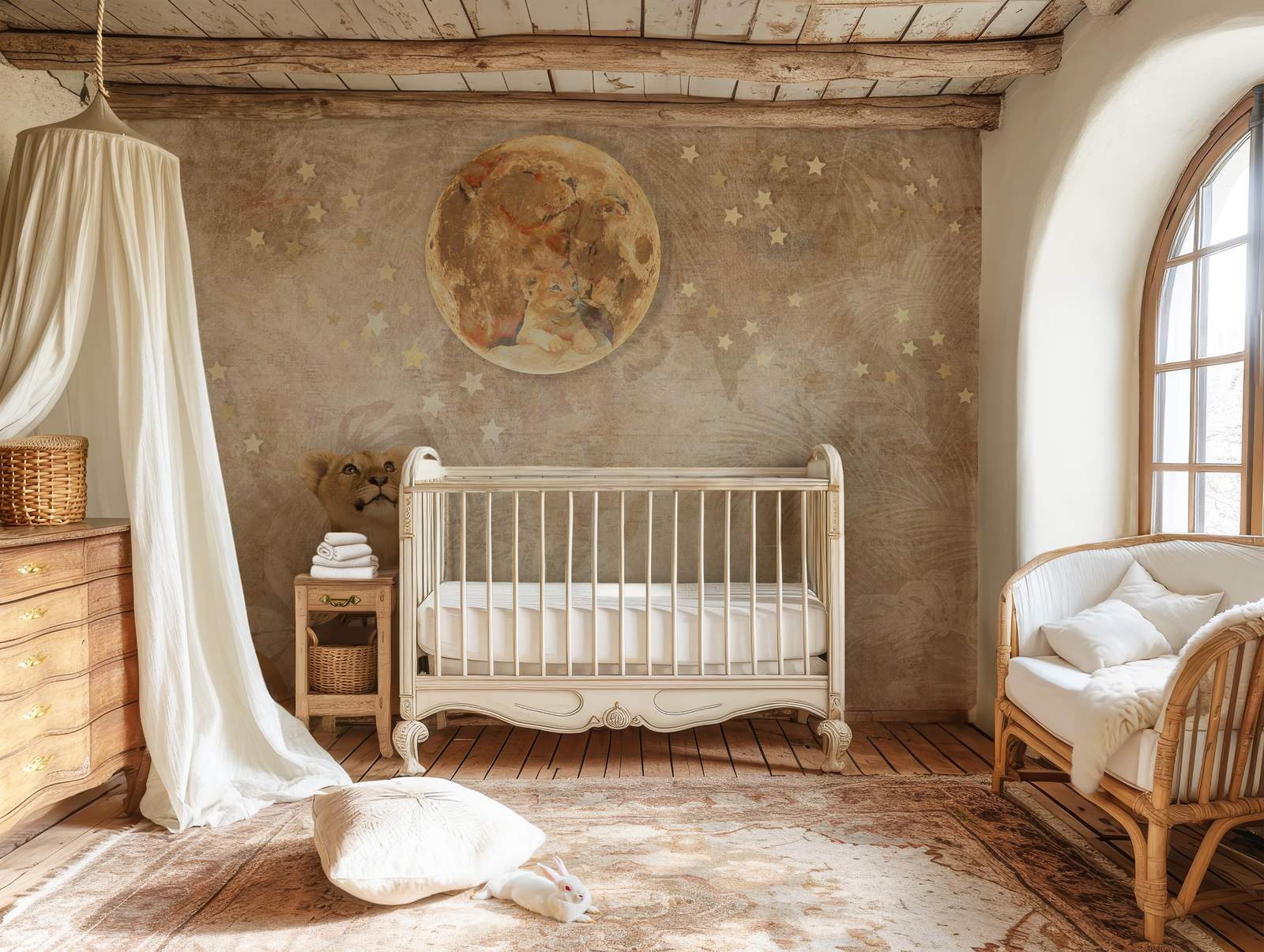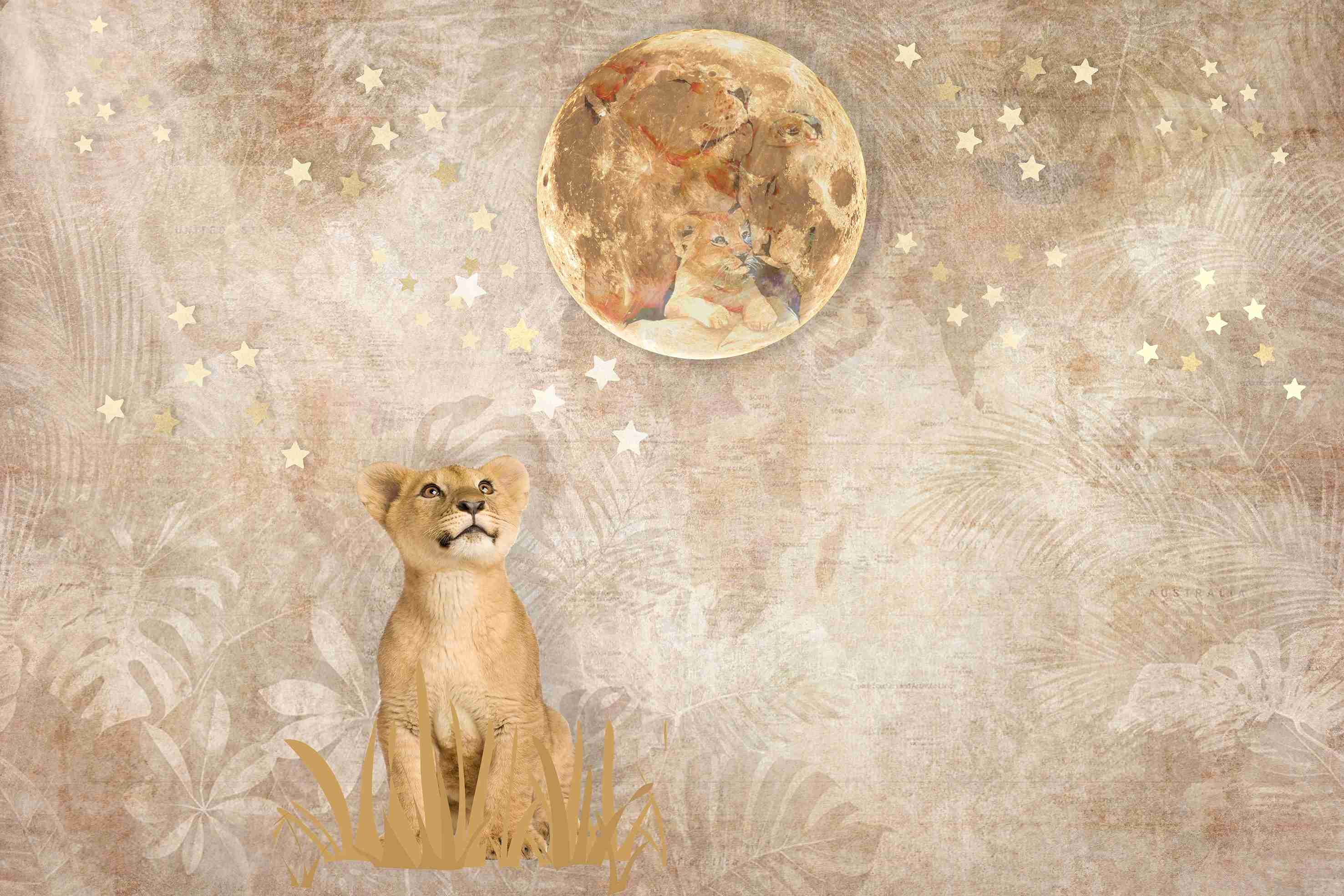 Transforma tu espacio con este encantador papel pintado de león y estrellas. Perfecto para una habitación infantil, aporta un toque de asombro y serenidad a cualquier ambiente. Fácil de aplicar y duradero, es la elección ideal para una decoración mágica. Un majestuoso punto focal para tu hogar.