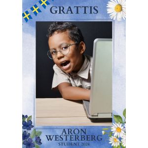 Den som är någorlunda händig kan enkelt göra en egen studentskylt. Om du väljer detta alternativet så levererar vi din design på 230gr matt och vattenavisande vinyl, (0,2mm tjockt likt en poster). Detta är också ett utmärkt alternativ om du önskar att sätta upp en bild på studenten i festlokalen.