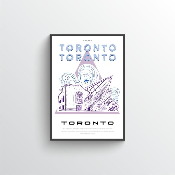 Este impresionante póster muestra una ilustración de Toronto, Canadá. Presenta ilustraciones de destacados puntos de referencia arquitectónicos, lo que lo convierte en una adición perfecta para cualquier hogar u oficina. El texto destacado incluye 'TORONTO'. El producto contiene solo un póster.