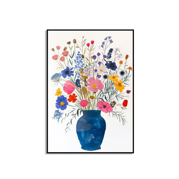 Este vibrante póster de pared presenta un hermoso arreglo de flores coloridas en un jarrón azul. El diseño animado agrega un toque de naturaleza y elegancia a cualquier habitación. Perfecto para iluminar su espacio vital. El producto contiene un único póster de pared.
