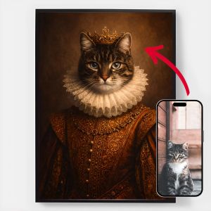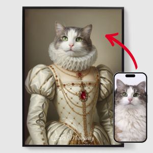 Nuestros pósters personalizados de retratos reales de mascotas son una forma única de mostrar la personalidad de tu mascota. Cada pieza se hace a medida, resaltando un lado regio de tu mascota que te encantará. Estos pósters son regalos perfectos para los amantes de las mascotas o un encantador complemento para la decoración de tu hogar. Con impresiones de alta calidad y varios tamaños disponibles, encontrar el retrato perfecto es más fácil que nunca.