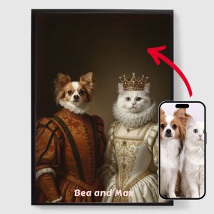 Nuestros pósters personalizados de retratos reales de mascotas son una forma única de mostrar la personalidad de tu mascota. Cada pieza se hace a medida, resaltando un lado regio de tu mascota que te encantará. Estos pósters son regalos perfectos para los amantes de las mascotas o un encantador complemento para la decoración de tu hogar. Con impresiones de alta calidad y varios tamaños disponibles, encontrar el retrato perfecto es más fácil que nunca.