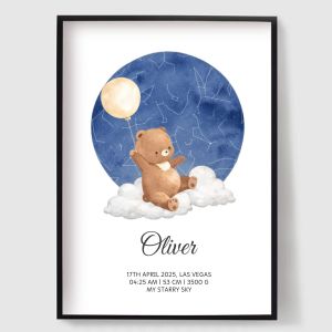 Explora nuestra colección única de pósters de mapas estelares personalizados diseñados para capturar un momento en el tiempo. Cada póster se hace a medida, presentando una fecha y la vista nocturna de un lugar específico. Ya sea que estés conmemorando un cumpleaños, aniversario o un evento especial, nuestros pósters de mapas estelares ofrecen un regalo único y considerado. También agregan un significado especial a tu propio hogar, sumergiéndote en la belleza celestial de las estrellas.