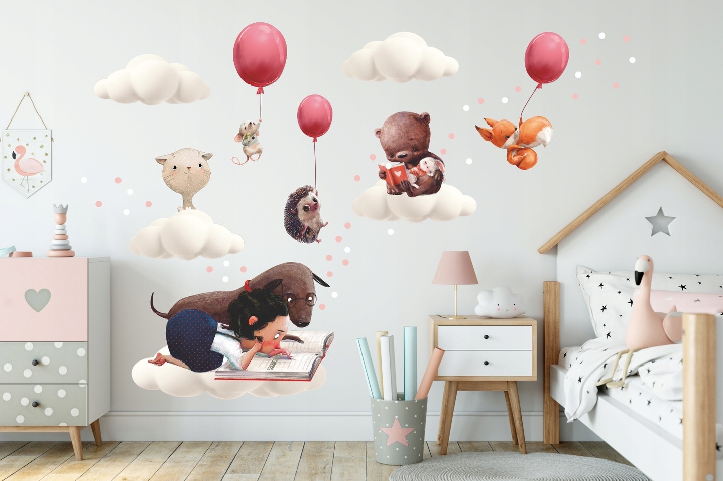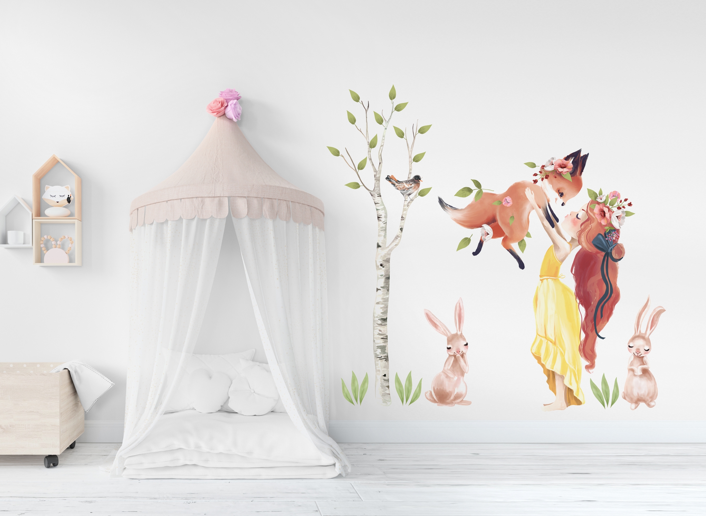 Nuestras decoraciones de pared no solo son bellas, sino que también son un espacio de juego en sí mismas. Atraen a los niños a interactuar, crear sus propias historias y aventuras. Cada wallsticker tiene una historia que los niños pueden continuar, haciendo que la habitación sea parte del juego.