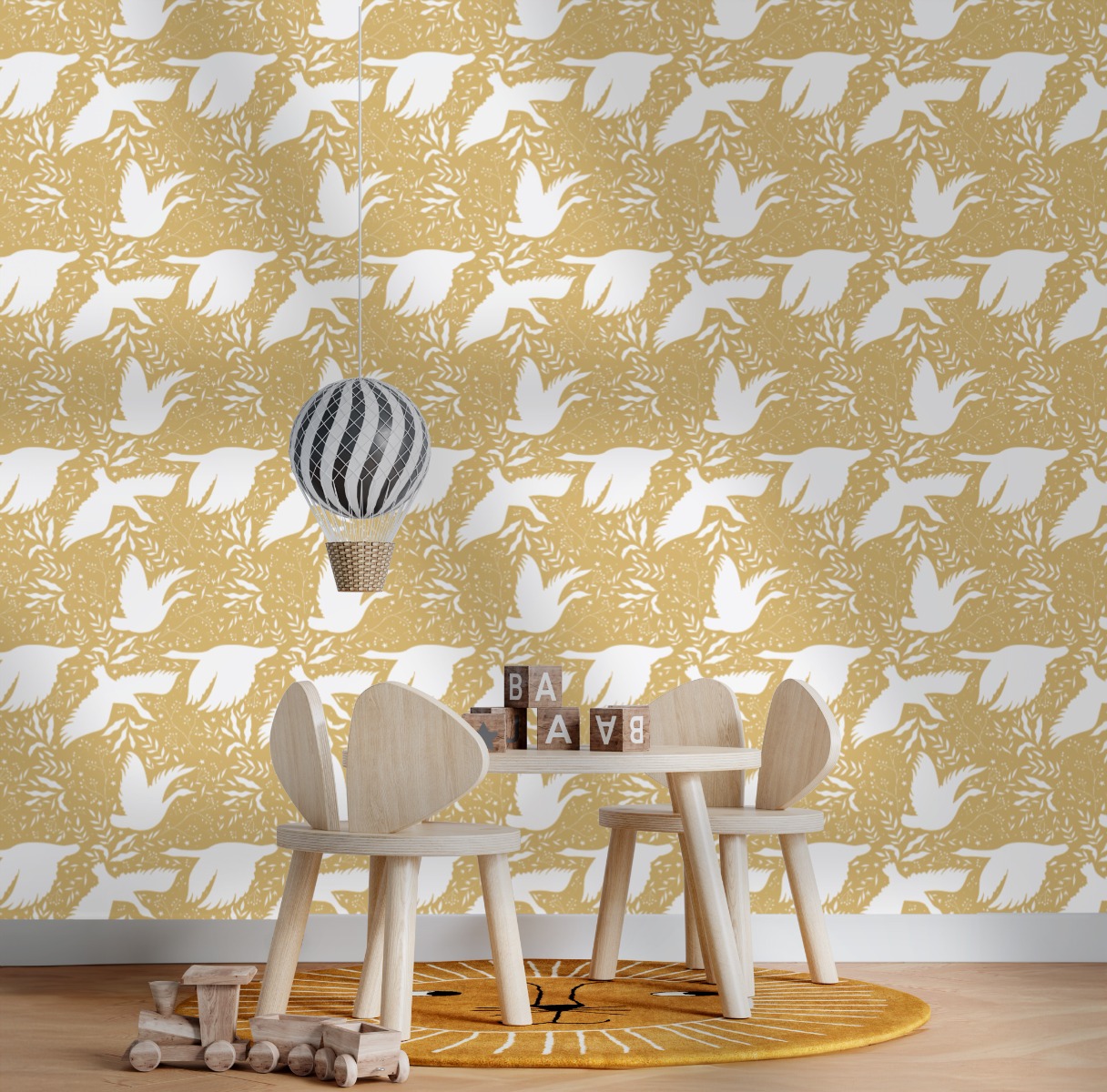 Papel pintado - Cisnes / Amarillo